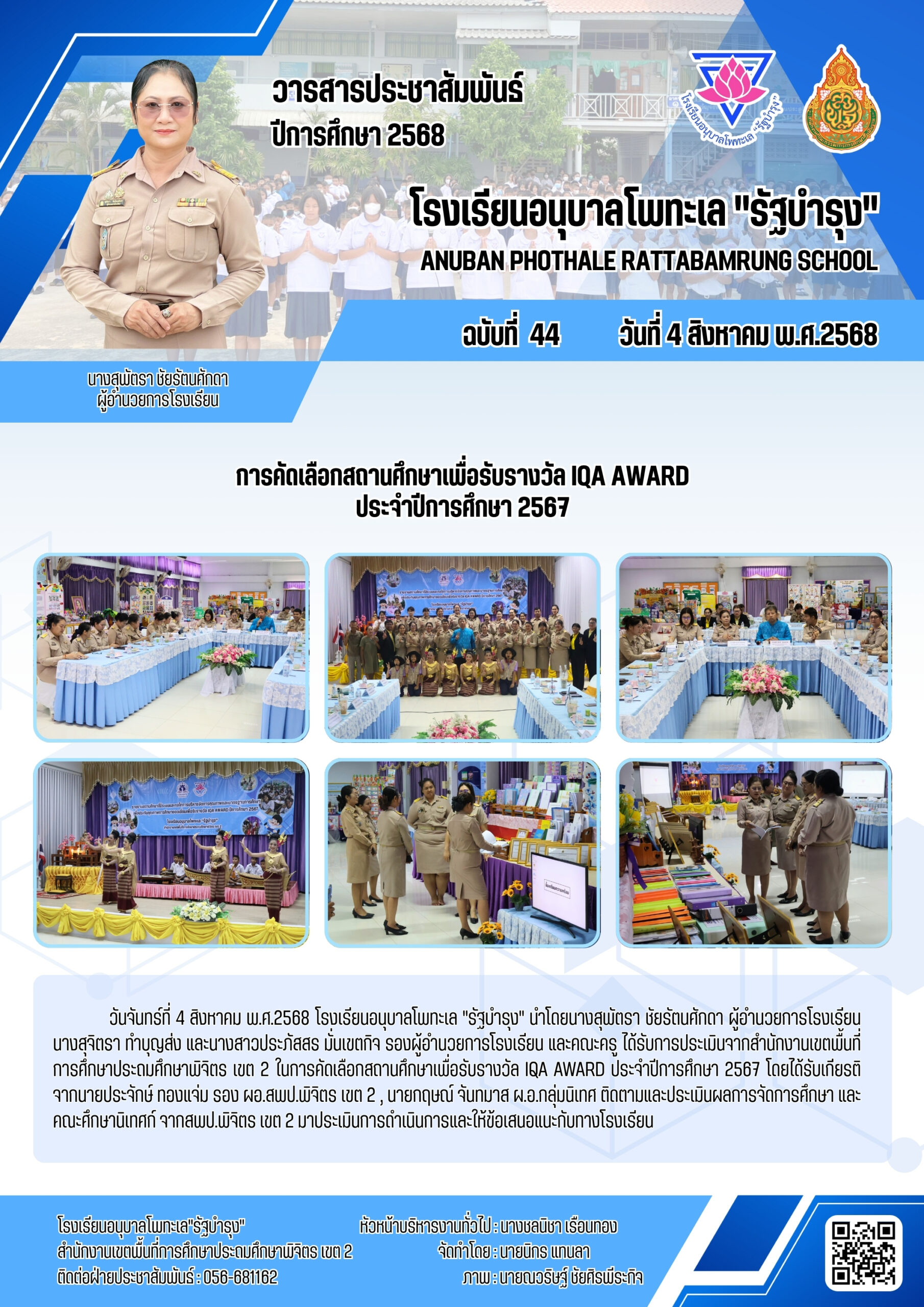 การคัดเลือกสถานศึกษาเพื่อรับรางวัล IQA AWARD ประจำปีการศึกษา 2567