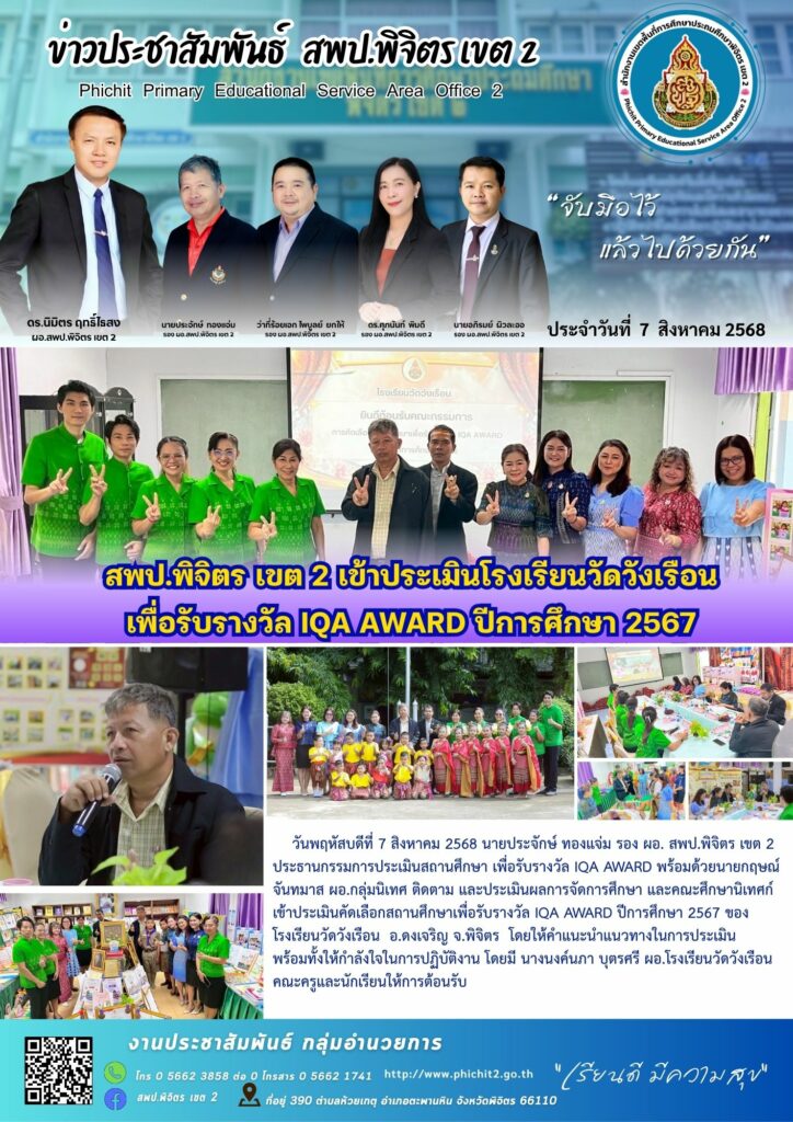 สพป.พิจิตร เขต 2 เข้าประเมินโรงเรียนวัดวังเรือน เพื่อรับรางวัล IQA AWARD ปีการศึกษา 2567
