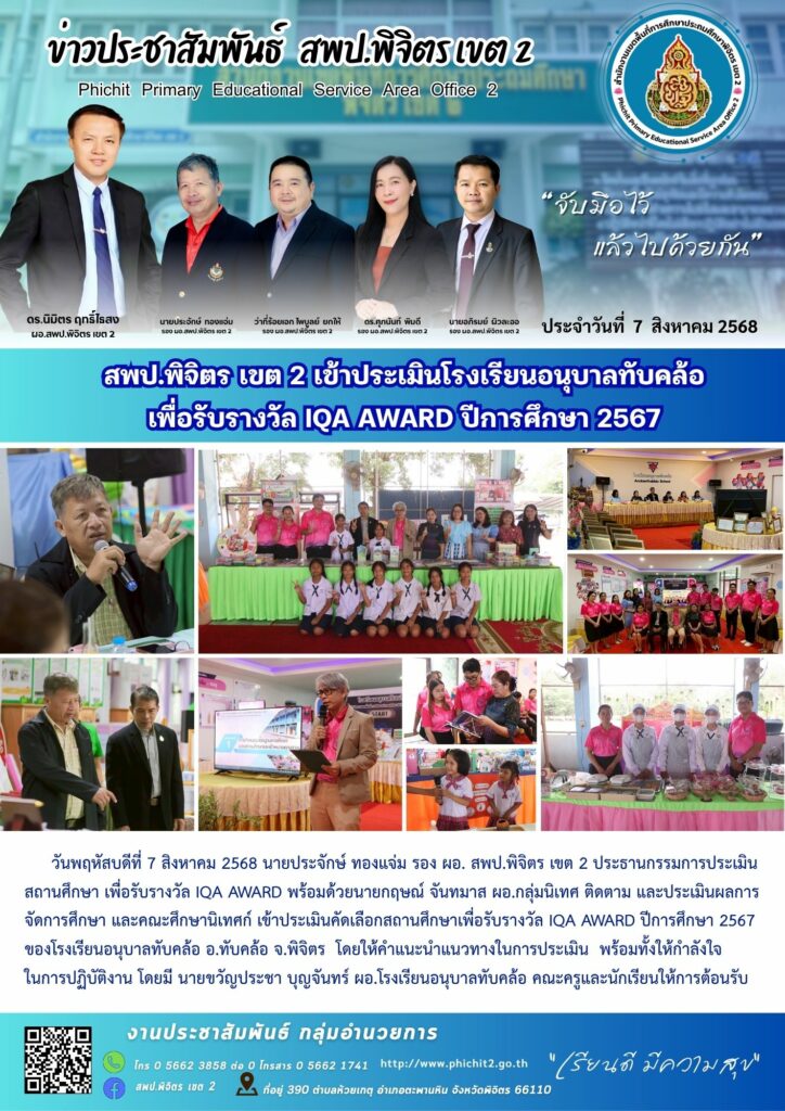 สพป.พิจิตร เขต 2 เข้าประเมินโรงเรียนอนุบาลทับคล้อ เพื่อรับรางวัล IQA AWARD ปีการศึกษา 2567