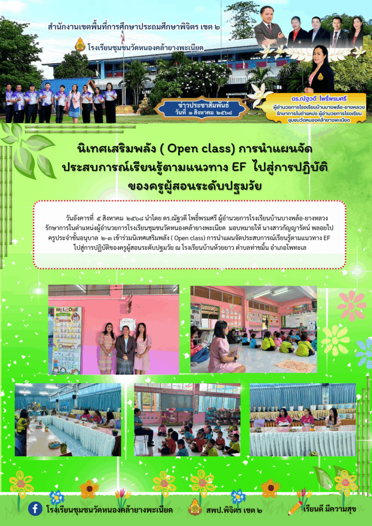 นิเทศเสริมพลัง ( Open class) การนำแผนจัดประสบการณ์เรียนรู้ตามแนวทาง EF ไปสู่การปฏิบัติของครูผู้สอนระดับปฐมวัย