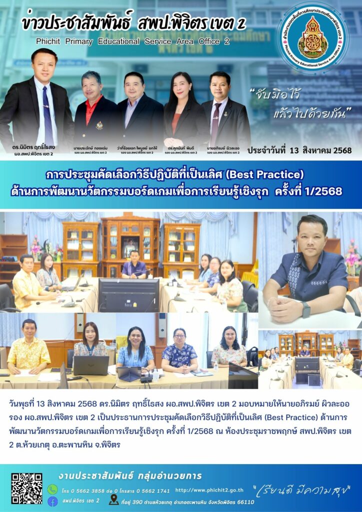 การประชุมคัดเลือกวิธีปฏิบัติที่เป็นเลิศ (Best Practice) ด้านการพัฒนานวัตกรรมบอร์ดเกมเพื่อการเรียนรู้เชิงรุกครั้งที่ 1/2568