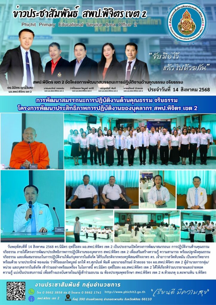 การพัฒนาสมรรถนะการปฏิบัติงานด้านคุณธรรม จริยธรรม โครงการพัฒนาประสิทธิภาพการปฏิบัติงานของบุคลากร สพป.พิจิตร เขต 2