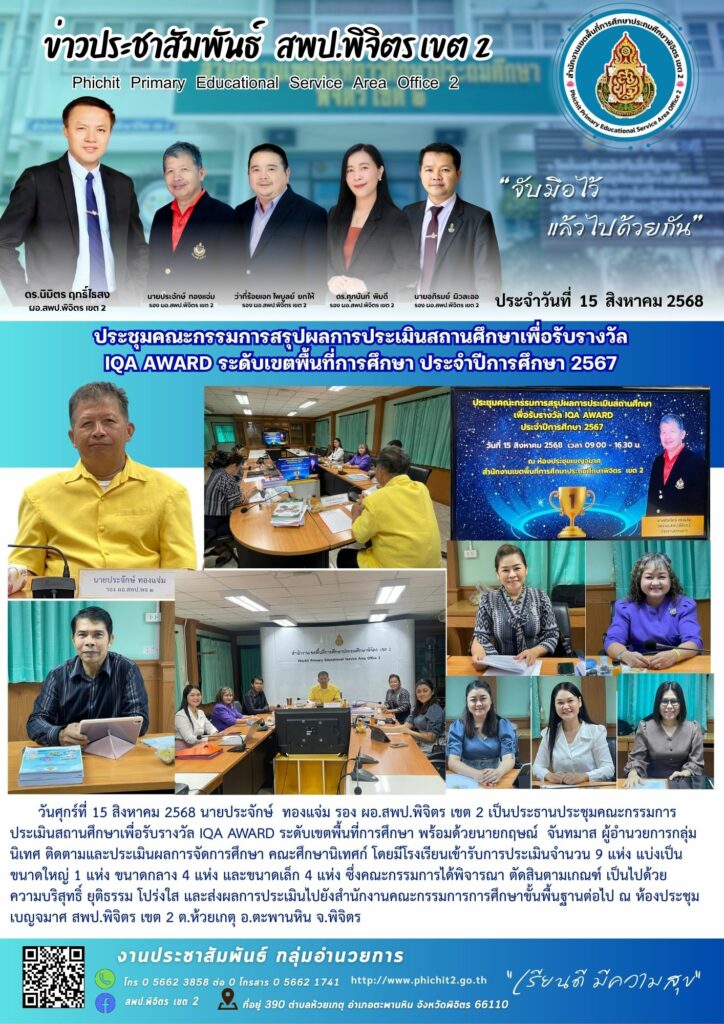 ประชุมคณะกรรมการสรุปผลการประเมินสถานศึกษาเพื่อรับรางวัล IQA AWARD ระดับเขตพื้นที่การศึกษา ประจำปีการศึกษา 2567