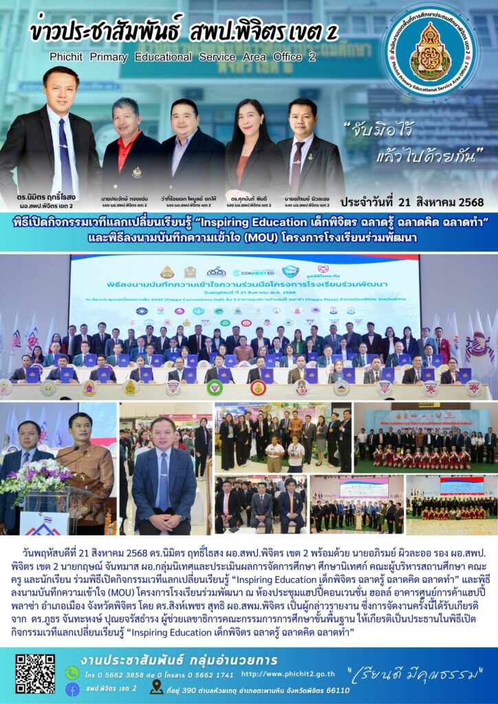 พิธีเปิดกิจกรรมเวทีแลกเปลี่ยนเรียนรู้ “Inspiring Education เด็กพิจิตร ฉลาดรู้ ฉลาดคิด ฉลาดทำ” และพิธีลงนามบันทึกความเข้าใจ (MOU) โครงการโรงเรียนร่วมพัฒนา