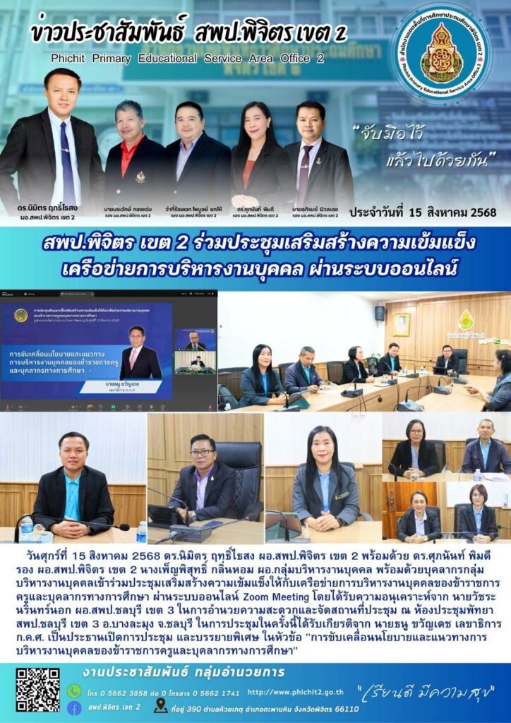 สพป.พิจิตร เขต 2 ร่วมประชุมเสริมสร้างความเข้มแข็งเครือข่ายการบริหารงานบุคคล ผ่านระบบออนไลน์