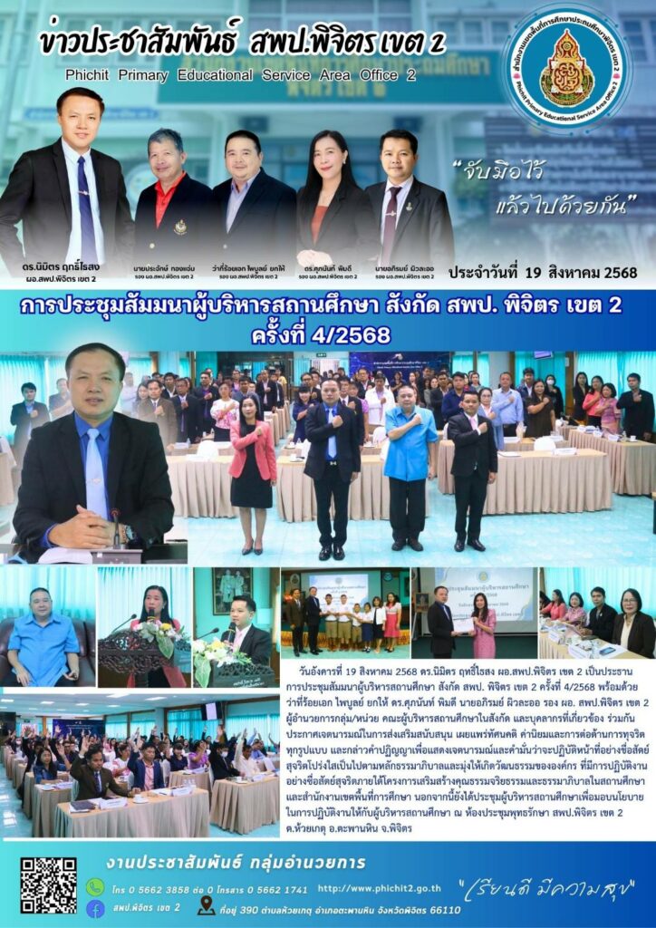 การประชุมสัมมนาผู้บริหารสถานศึกษา สังกัด สพป. พิจิตร เขต 2 ครั้งที่ 4/2568