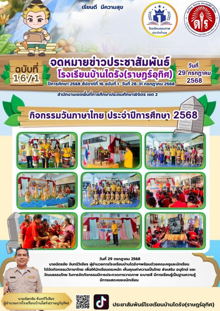วารสารประชาสัมพันธ์โรงเรียนบ้านไดรัง(ราษฎร์อุทิศ) สัปดาห์ที่ 15 ฉบับที่ 1-3 วันที่ 21-28 กรกฎาคม 2568