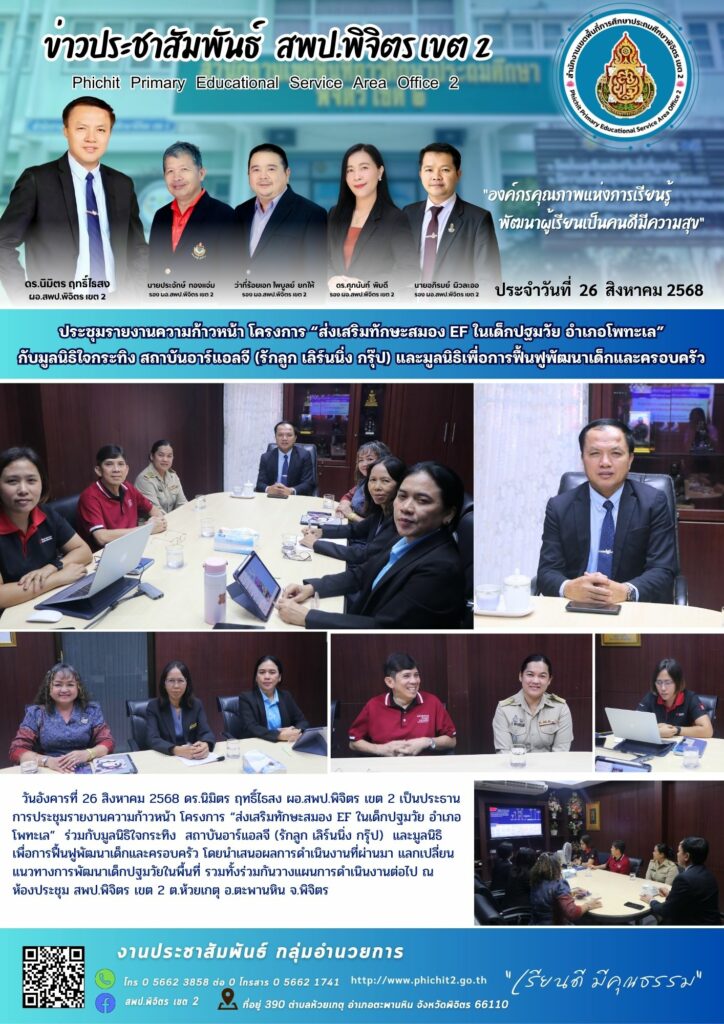 ประชุมรายงานความก้าวหน้า โครงการ “ส่งเสริมทักษะสมอง EF ในเด็กปฐมวัย อำเภอโพทะเล” กับมูลนิธิใจกระทิง สถาบันอาร์แอลจี (รักลูก เลิร์นนิ่ง กรุ๊ป) และมูลนิธิเพื่อการฟื้นฟูพัฒนาเด็กและครอบครัว