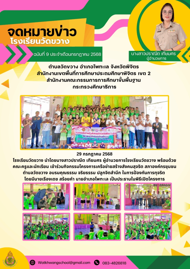 โรงเรียนวัดขวางเข้าร่วมกิจกรรมโครงการเครือข่ายสร้างสังคมสุจริต