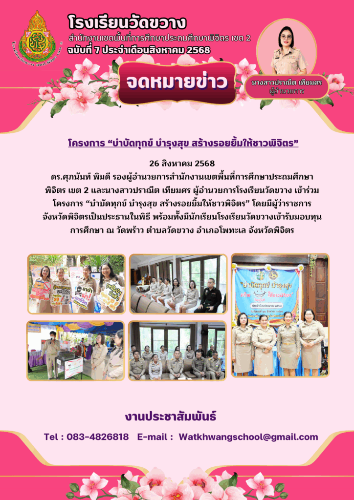 โรงเรียนวัดขวาง เข้าร่วมโครงการ “บำบัดทุกข์ บำรุงสุข สร้างรอยยิ้มให้ชาวพิจิตร”