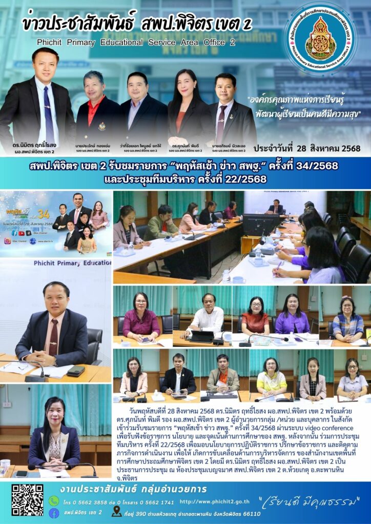 สพป.พิจิตร เขต 2 รับชมรายการ “พฤหัสเช้า ข่าว สพฐ.“ ครั้งที่ 34/2568 และประชุมทีมบริหาร ครั้งที่ 22/2568