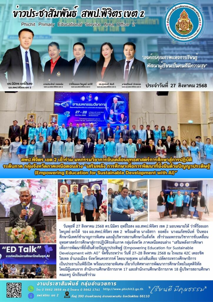 สพป.พิจิตร เขต 2 เข้าร่วม มหกรรมวิชาการขับเคลื่อนยุทธศาสตร์การศึกษาสู่การปฏิบัติ ระดับภาค กลุ่มจังหวัดภาคเหนือตอนล่าง “เสริมพลัง การศึกษาเพื่อการพัฒนาที่ยั่งยืนด้วยปัญญาประดิษฐ์ (Empowering Education for Sustainable Development with AI)”