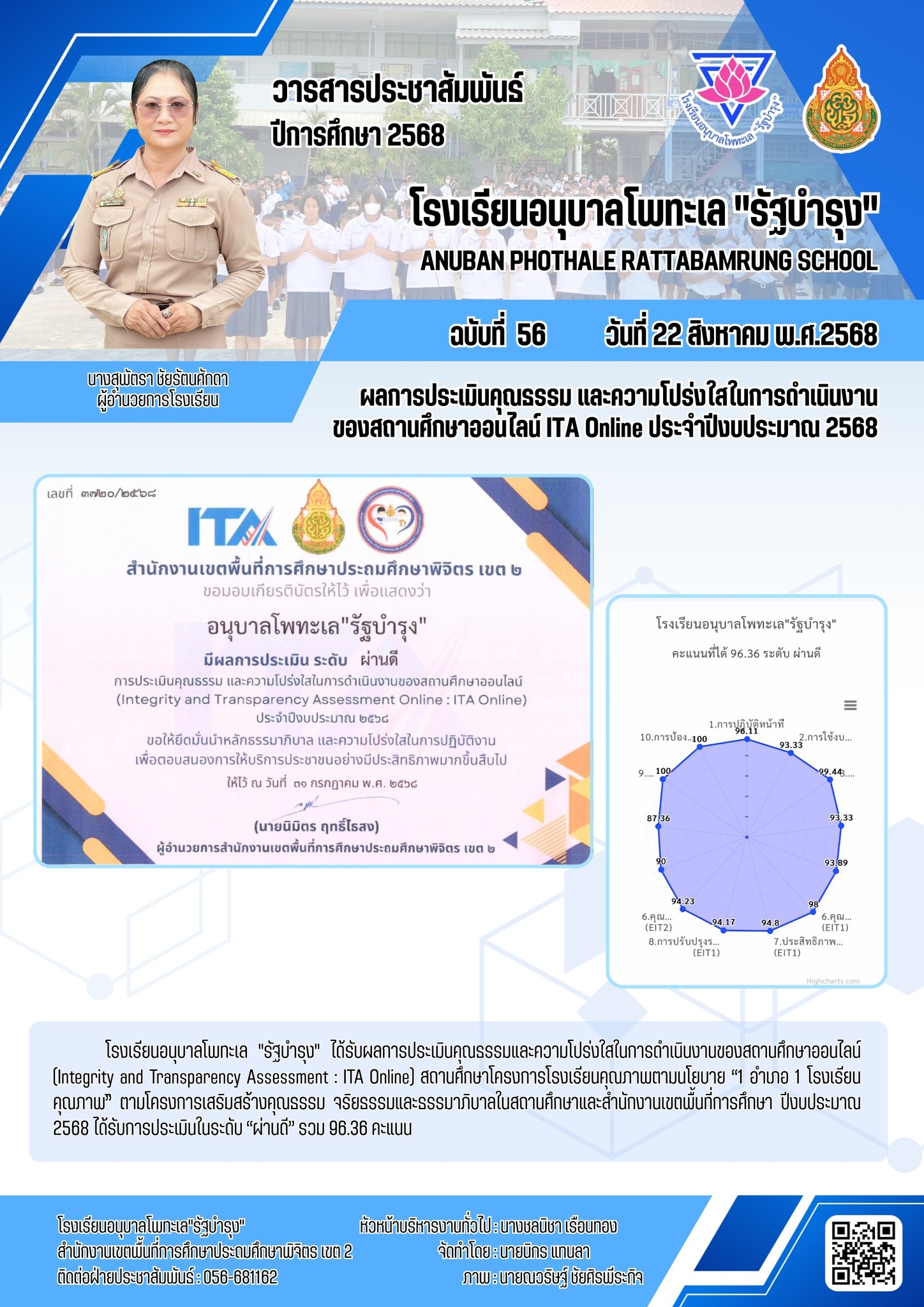 ผลการประเมินคุณธรรม และความโปร่งใสในการดำเนินงานของสถานศึกษาออนไลน์ ITA Online ประจำปีงบประมาณ 2568