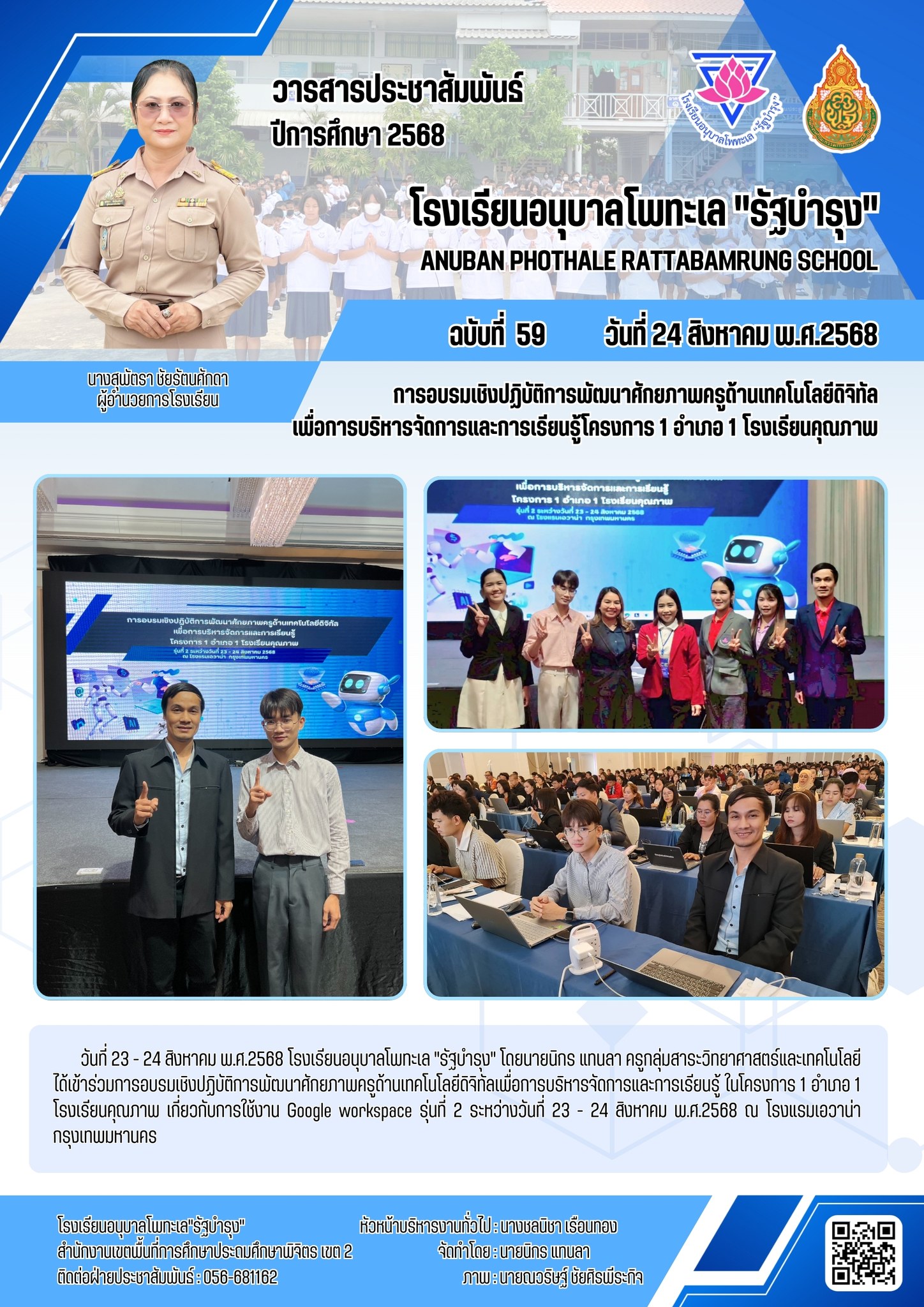 การอบรมเชิงปฏิบัติการพัฒนาศักยภาพครูด้านเทคโนโลยีดิจิทัล เพื่อการบริหารจัดการและการเรียนรู้โครงการ 1 อำเภอ 1 โรงเรียนคุณภาพ