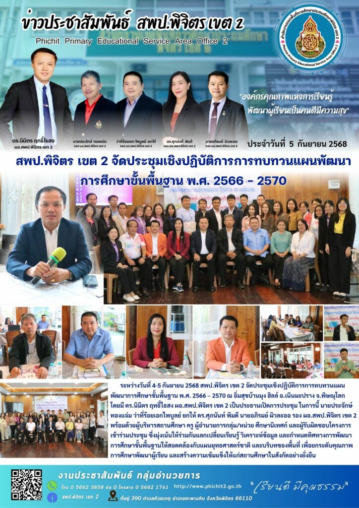 สพป.พิจิตร เขต 2 จัดประชุมเชิงปฏิบัติการการทบทวนแผนพัฒนาการศึกษาขั้นพื้นฐาน พ.ศ. 2566 – 2570