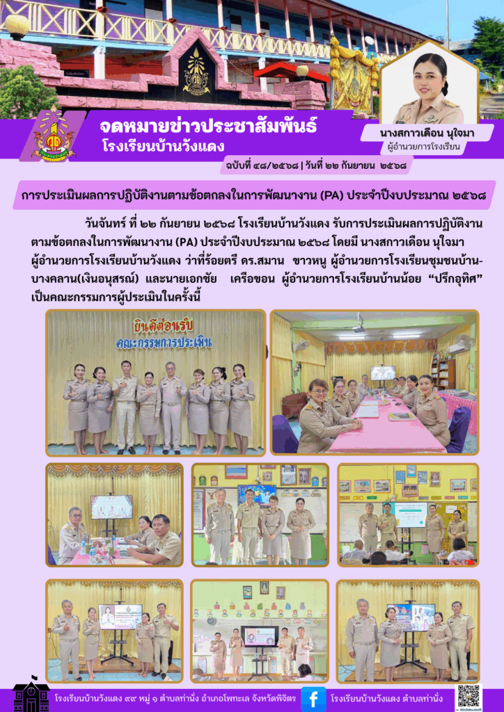 การประเมินผลการปฏิบัติงานตามข้อตกลงในการพัฒนางาน (PA) ประจำปีงบประมาณ ๒๕๖๘