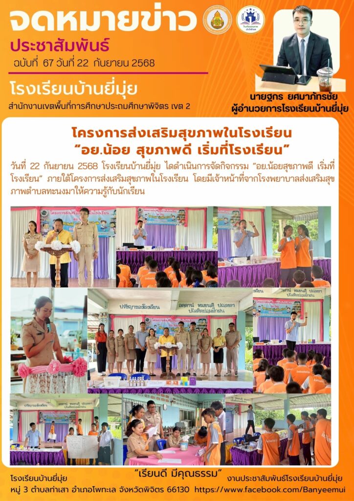 โครงการส่งเสริมสุขภาพในโรงเรียน“อย.น้อย สุขภาพดี เริ่มที่โรงเรียน”