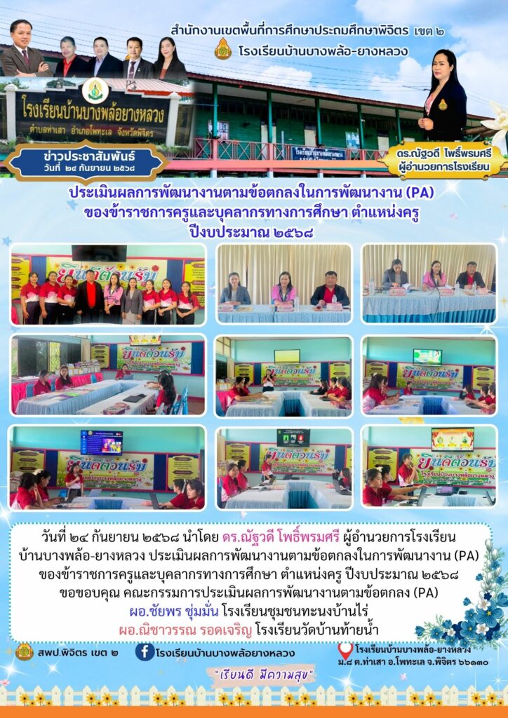 ประเมินผลการพัฒนางานตามข้อตกลงในการพัฒนางาน (PA) ของข้าราชการครูและบุคลากรทางการศึกษา ตำแหน่งครู ปีงบประมาณ ๒๕๖๘