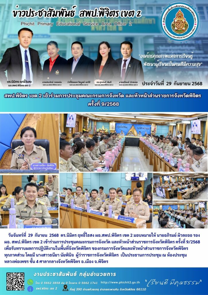 สพป.พิจิตร เขต 2 เข้าร่วมการประชุมคณะกรมการจังหวัด และหัวหน้าส่วนราชการจังหวัดพิจิตร ครั้งที่ 9/2568