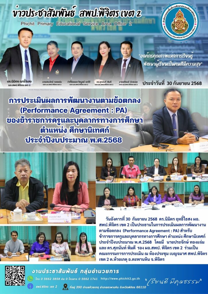 การประเมินผลการพัฒนางานตามข้อตกลง (Performance Agreement : PA) ของข้าราชการครูและบุคลากรทางการศึกษา ตำแหน่ง ศึกษานิเทศก์ ของข้าราชการครูและบุคลากรทางการศึกษา ตำแหน่ง ศึกษานิเทศก์
