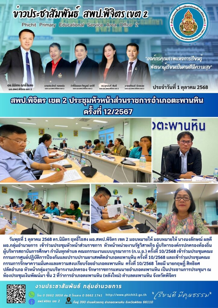 สพป.พิจิตร เขต 2 ประชุมหัวหน้าส่วนราชการอำเภอตะพานหิน ครั้งที่ 12/2567