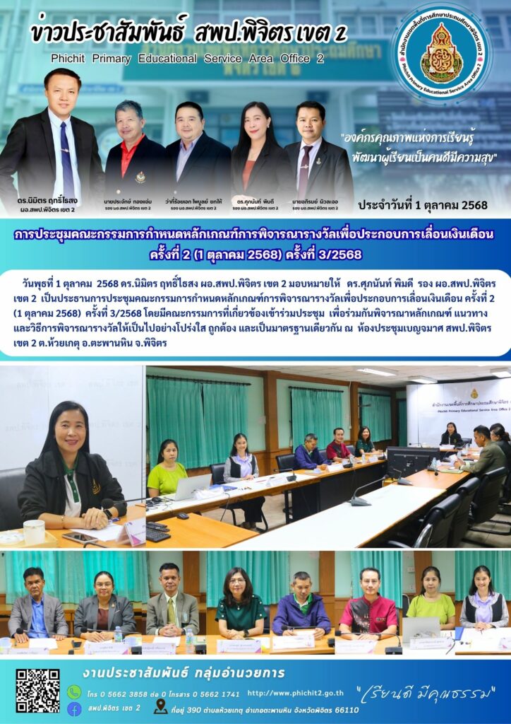 การประชุมคณะกรรมการกำหนดหลักเกณฑ์การพิจารณารางวัลเพื่อประกอบการเลื่อนเงินเดือน ครั้งที่ 2 (1 ตุลาคม 2568) ครั้งที่ 3/2568