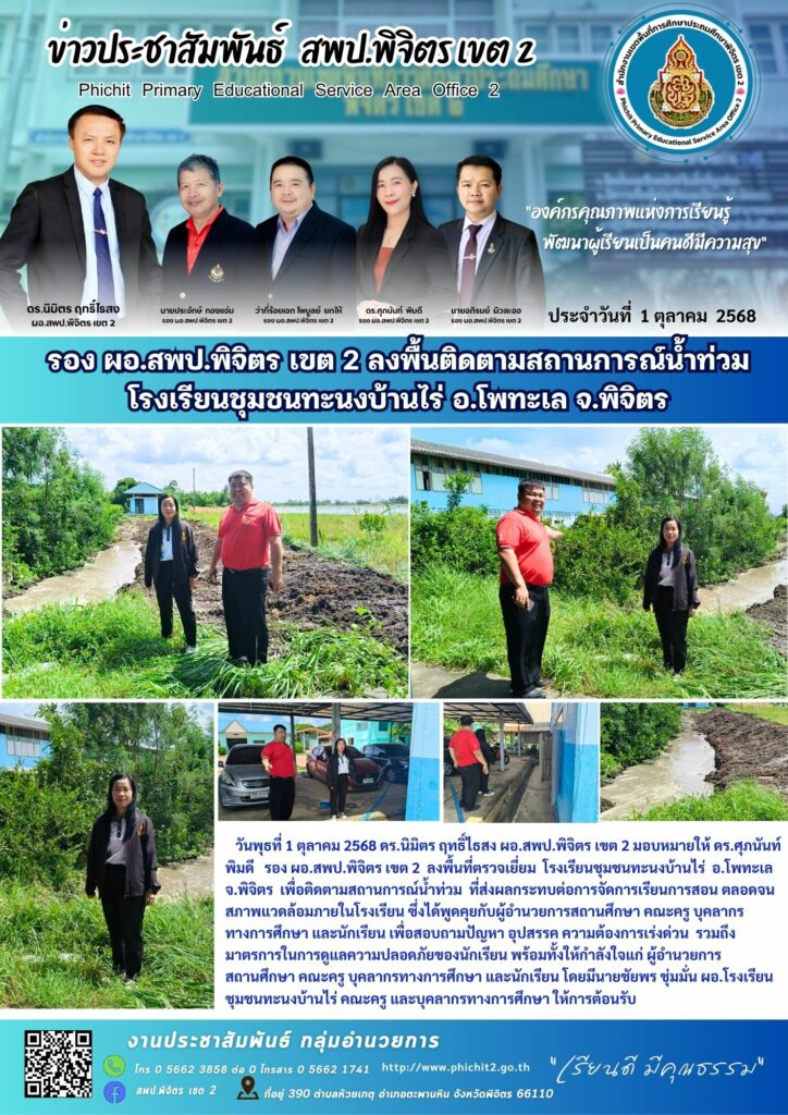 รอง ผอ.สพป.พิจิตร เขต 2 ลงพื้นติดตามสถานการณ์น้ำท่วมโรงเรียนชุมชนทะนงบ้านไร่ อ.โพทะเล จ.พิจิตร