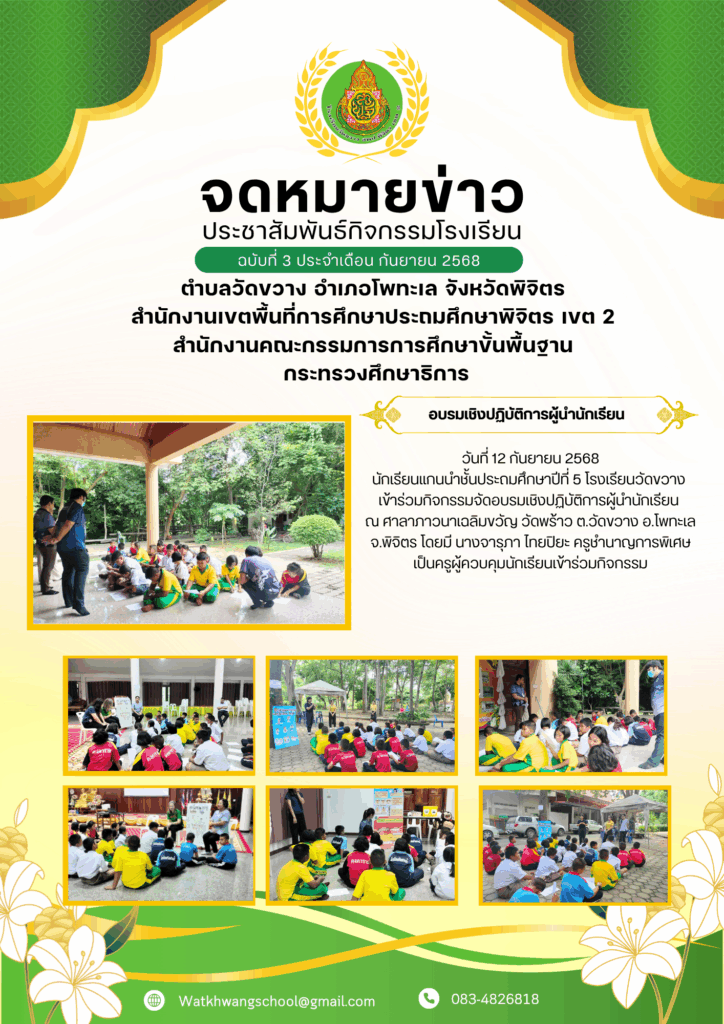 โรงเรียนวัดขวางเข้าร่วมกิจกรรมจัดอบรมเชิงปฏิบัติการผู้นำนักเรียน