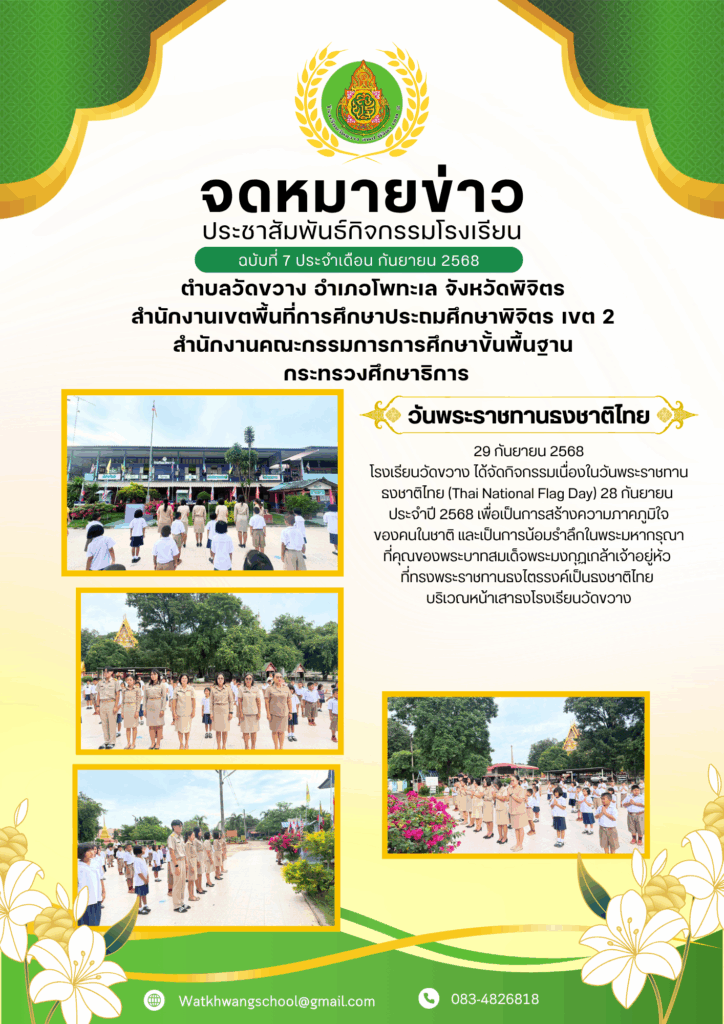 โรงเรียนวัดขวาง ได้จัดกิจกรรมเนื่องในวันพระราชทานธงชาติไทย (Thai National Flag Day)