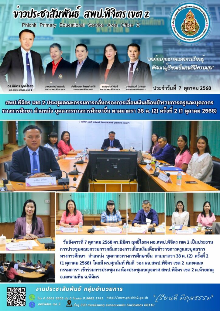 สพป.พิจิตร เขต 2 ประชุมคณะกรรมการกลั่นกรองการเลื่อนเงินเดือนข้าราชการครูและบุคลากรทางการศึกษา ตำแหน่ง บุคลากรทางการศึกษาอื่น ตามมาตรา 38 ค. (2) ครั้งที่ 2 (1 ตุลาคม 2568)