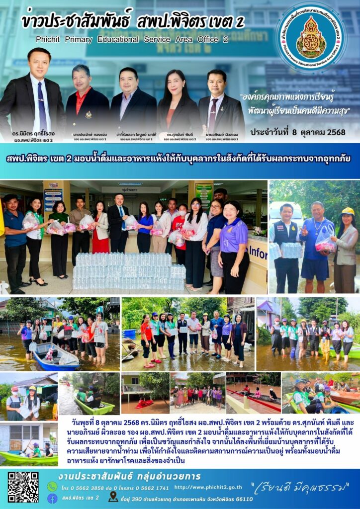 สพป.พิจิตร เขต 2 มอบน้ำดื่มและอาหารแห้งให้กับบุคลากรในสังกัดที่ได้รับผลกระทบจากอุทกภัย
