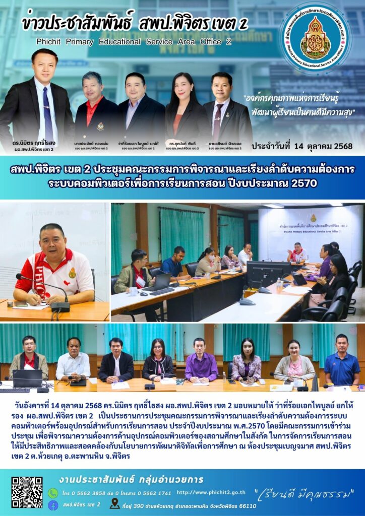 สพป.พิจิตร เขต 2 ประชุมคณะกรรมการพิจารณาและเรียงลำดับความต้องการ ระบบคอมพิวเตอร์เพื่อการเรียนการสอน ปีงบประมาณ 2570