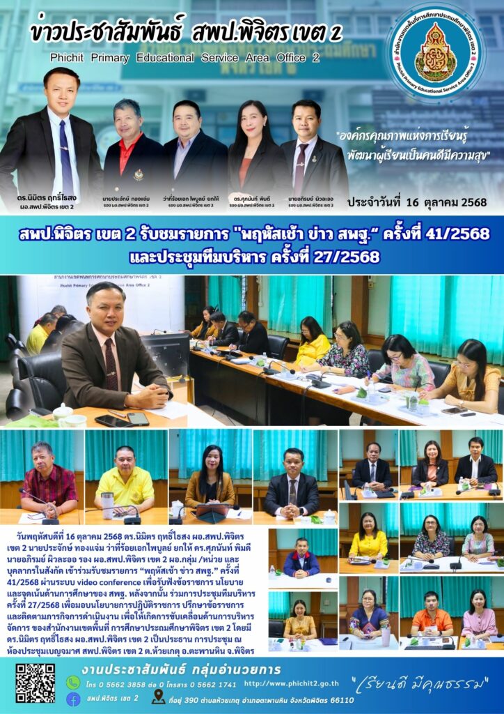 สพป.พิจิตร เขต 2 รับชมรายการ “พฤหัสเช้า ข่าว สพฐ.“ ครั้งที่ 41/2568 และประชุมทีมบริหาร ครั้งที่ 27/2568