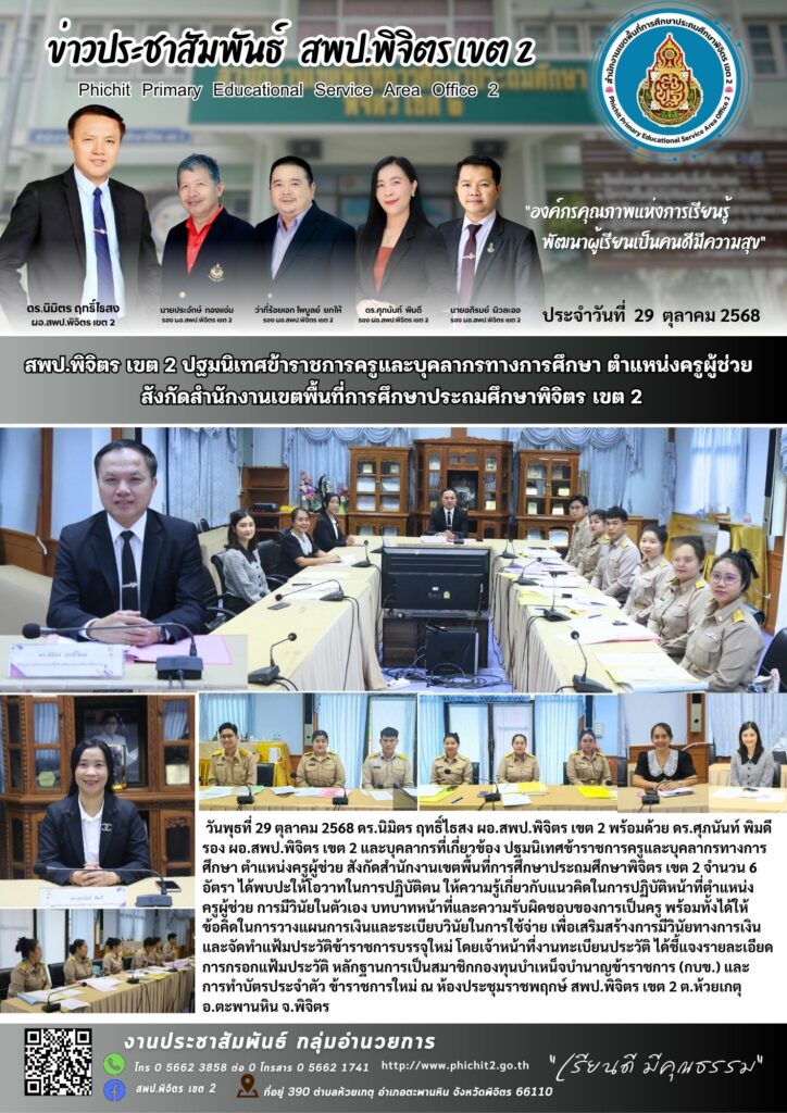 สพป.พิจิตร เขต 2 ปฐมนิเทศข้าราชการครูและบุคลากรทางการศึกษา ตำแหน่งครูผู้ช่วย สังกัดสำนักงานเขตพื้นที่การศึกษาประถมศึกษาพิจิตร เขต 2