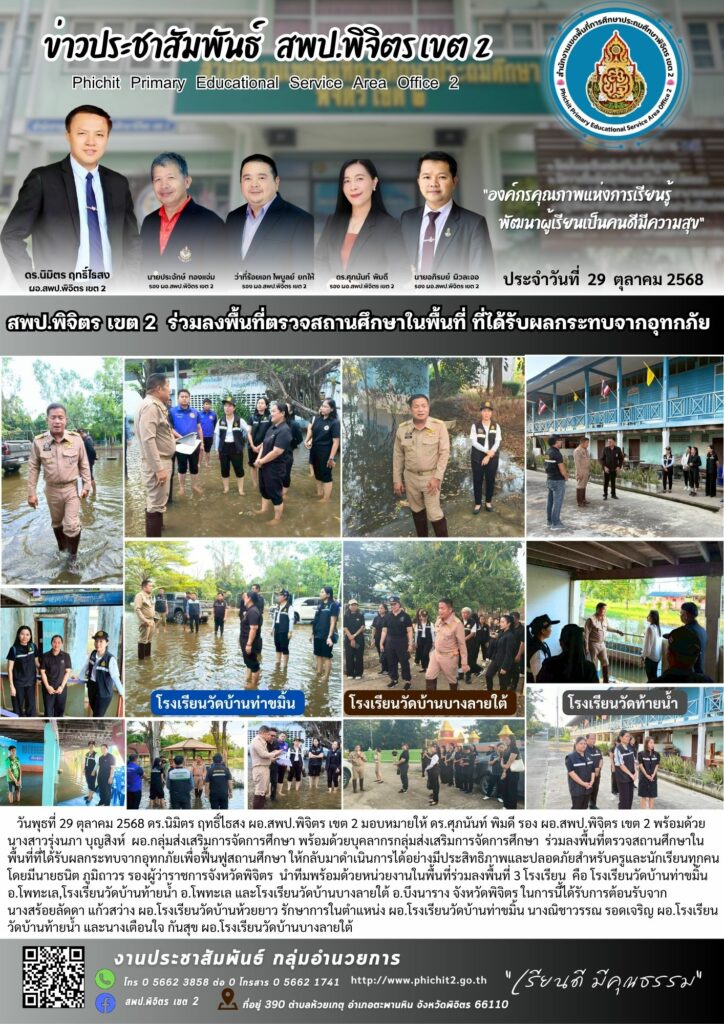สพป.พิจิตร เขต 2 ร่วมลงพื้นที่ตรวจสถานศึกษาในพื้นที่ ที่ได้รับผลกระทบจากอุทกภัย