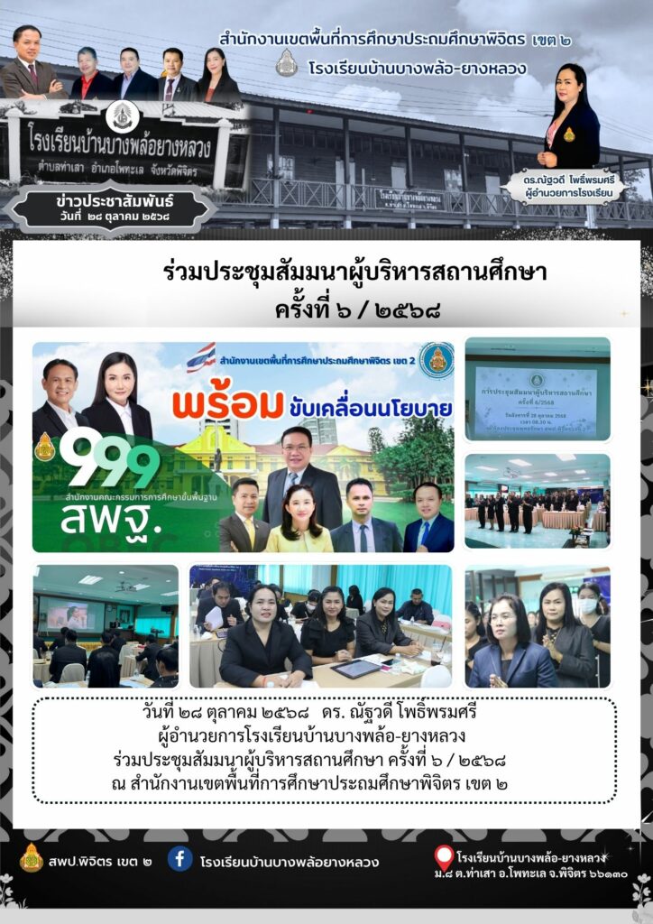 ผู้อำนวยการโรงเรียนบ้านบางพล้อ-ยางหลวงร่วมประชุมสัมมนาผู้บริหารสถานศึกษา ครั้งที่ ๖ / ๒๕๖๘