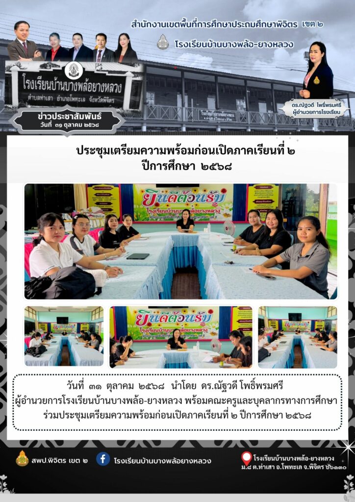 ประชุมเตรียมความพร้อมก่อนเปิดภาคเรียนที่ ๒ ปีการศึกษา๒๕๖๘