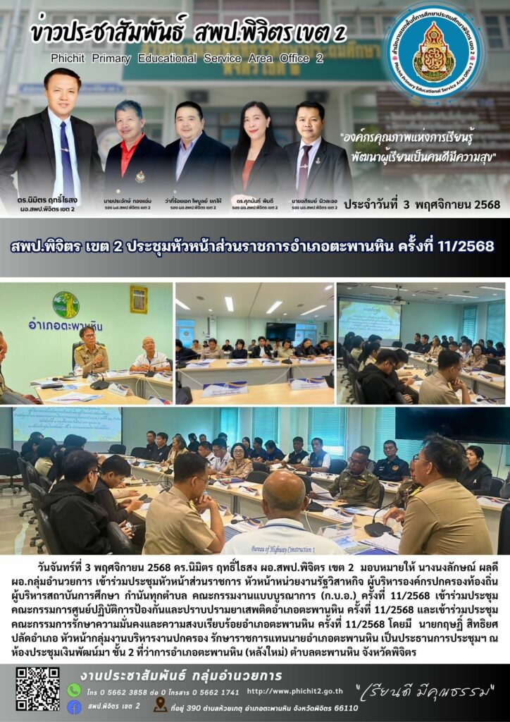 สพป.พิจิตร เขต 2 ประชุมหัวหน้าส่วนราชการอำเภอตะพานหิน ครั้งที่ 11/2568