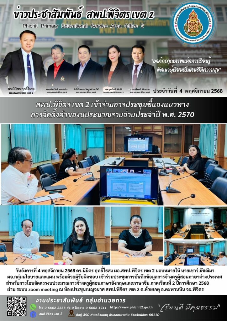 สพป.พิจิตร เขต 2 เข้าร่วมการประชุมชี้แจงแนวทางการจัดตั้งคำของบประมาณรายจ่ายประจำปี พ.ศ. 2570