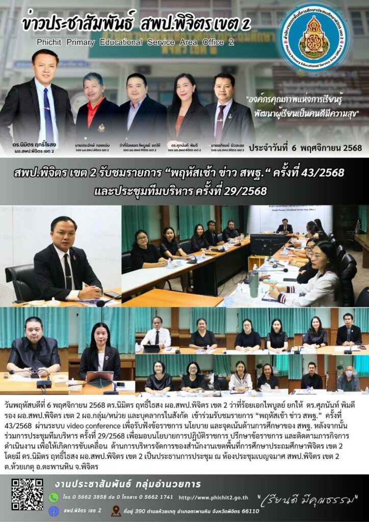 สพป.พิจิตร เขต 2 รับชมรายการ “พฤหัสเช้า ข่าว สพฐ.“ ครั้งที่ 43/2568 และประชุมทีมบริหาร ครั้งที่ 29/2568