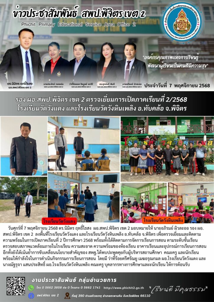 รอง ผอ.สพป.พิจิตร เขต 2 ตรวจเยี่ยมการเปิดภาคเรียนที่ 2/2568 โรงเรียนวัดวังแดง และโรงเรียนวัดวังหินเพลิง อ.ทับคล้อ จ.พิจิตร