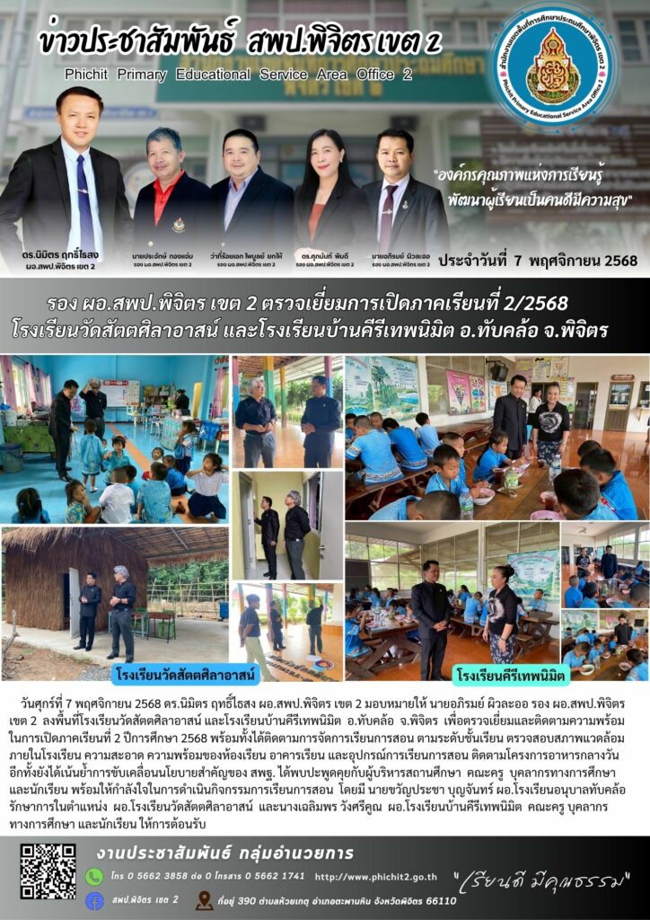 รอง ผอ.สพป.พิจิตร เขต 2 ตรวจเยี่ยมการเปิดภาคเรียนที่ 2/2568โรงเรียนวัดสัตตศิลาอาสน์ และโรงเรียนบ้านคีรีเทพนิมิต อ.ทับคล้อ จ.พิจิตร