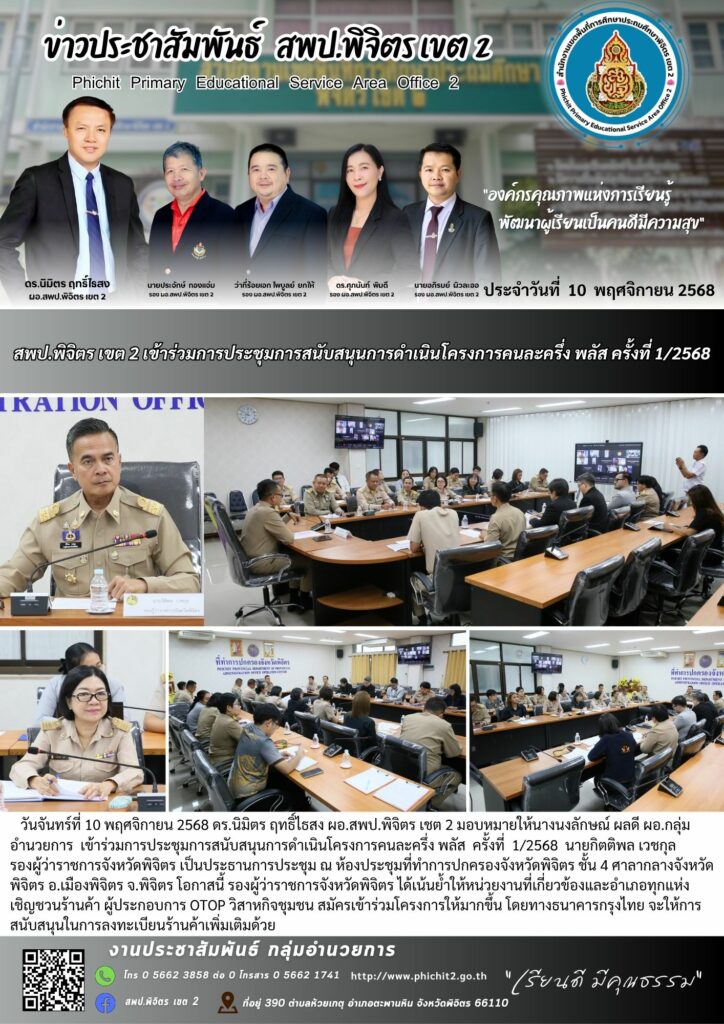 สพป.พิจิตร เขต 2 เข้าร่วมการประชุมการสนับสนุนการดำเนินโครงการคนละครึ่ง พลัส ครั้งที่ 1/2568