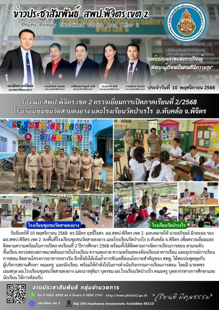 รอง ผอ.สพป.พิจิตร เขต 2 ตรวจเยี่ยมการเปิดภาคเรียนที่ 2/2568 โรงเรียนบุรพรัตน์วิทยาคาร และโรงเรียนอนุบาลทับคล้อ อ.ทับคล้อ จ.พิจิตร