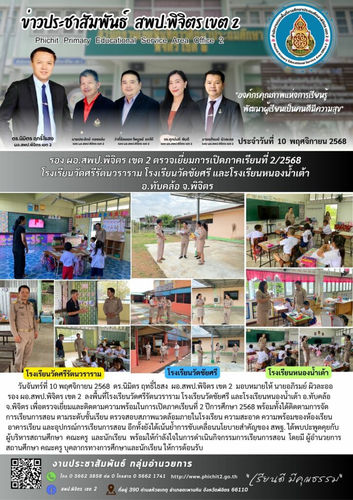 รอง ผอ.สพป.พิจิตร เขต 2 ตรวจเยี่ยมการเปิดภาคเรียนที่ 2/2568 โรงเรียนวัดศรีรัตนวราราม โรงเรียนวัดชัยศรี และโรงเรียนหนองน้ำเต้า อ.ทับคล้อ จ.พิจิตร