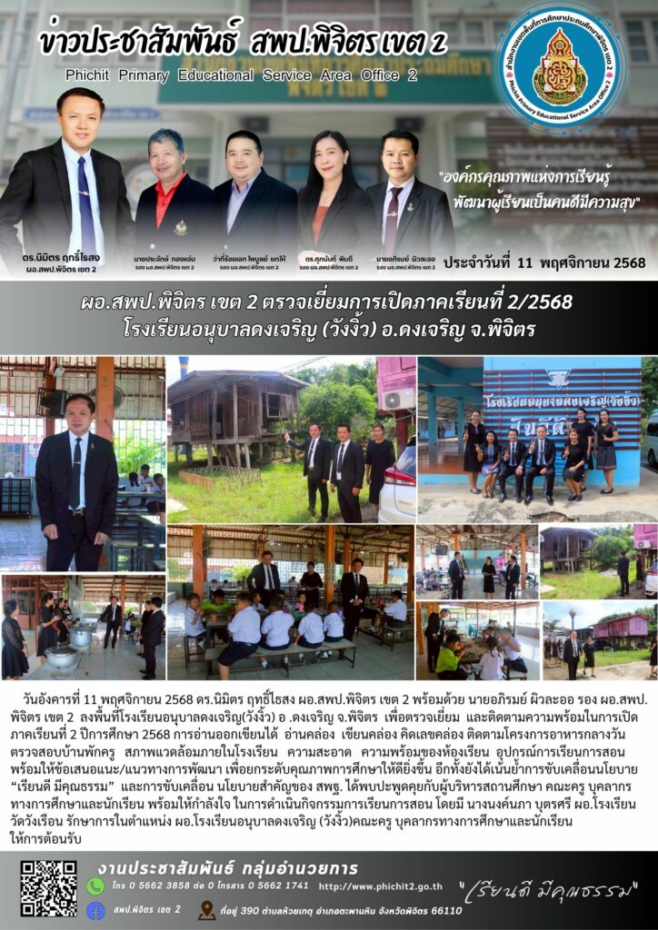 ผอ.สพป.พิจิตร เขต 2 ตรวจเยี่ยมการเปิดภาคเรียนที่ 2/2568 โรงเรียนอนุบาลดงเจริญ (วังงิ้ว) อ.ดงเจริญ จ.พิจิตร