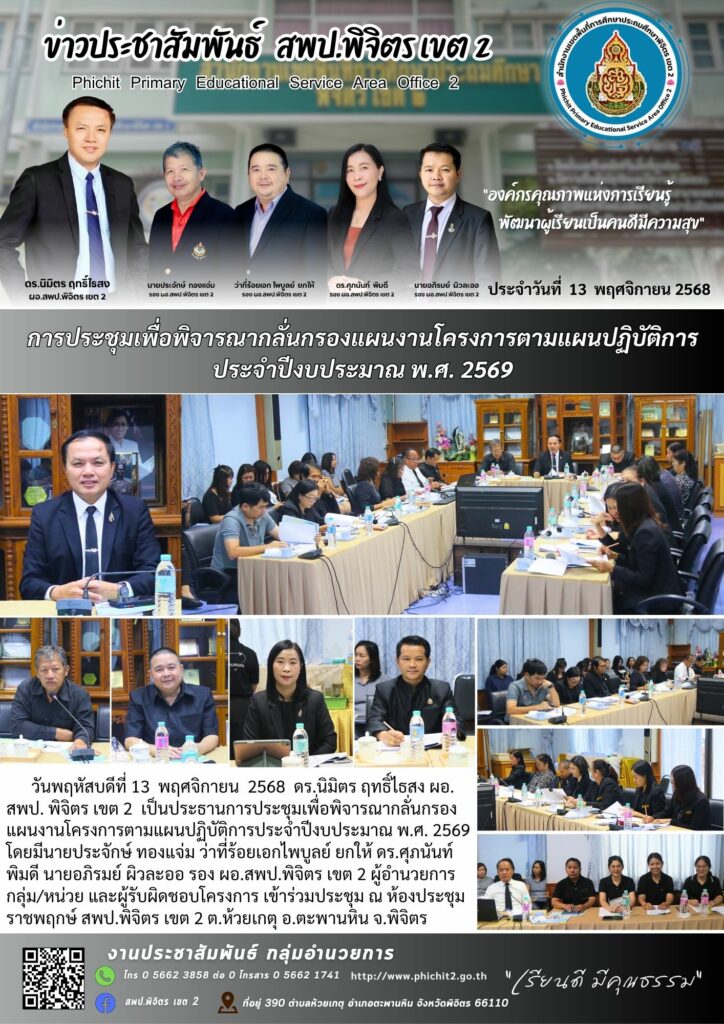 การประชุมเพื่อพิจารณากลั่นกรองแผนงานโครงการตามแผนปฏิบัติการประจำปีงบประมาณ พ.ศ. 2569