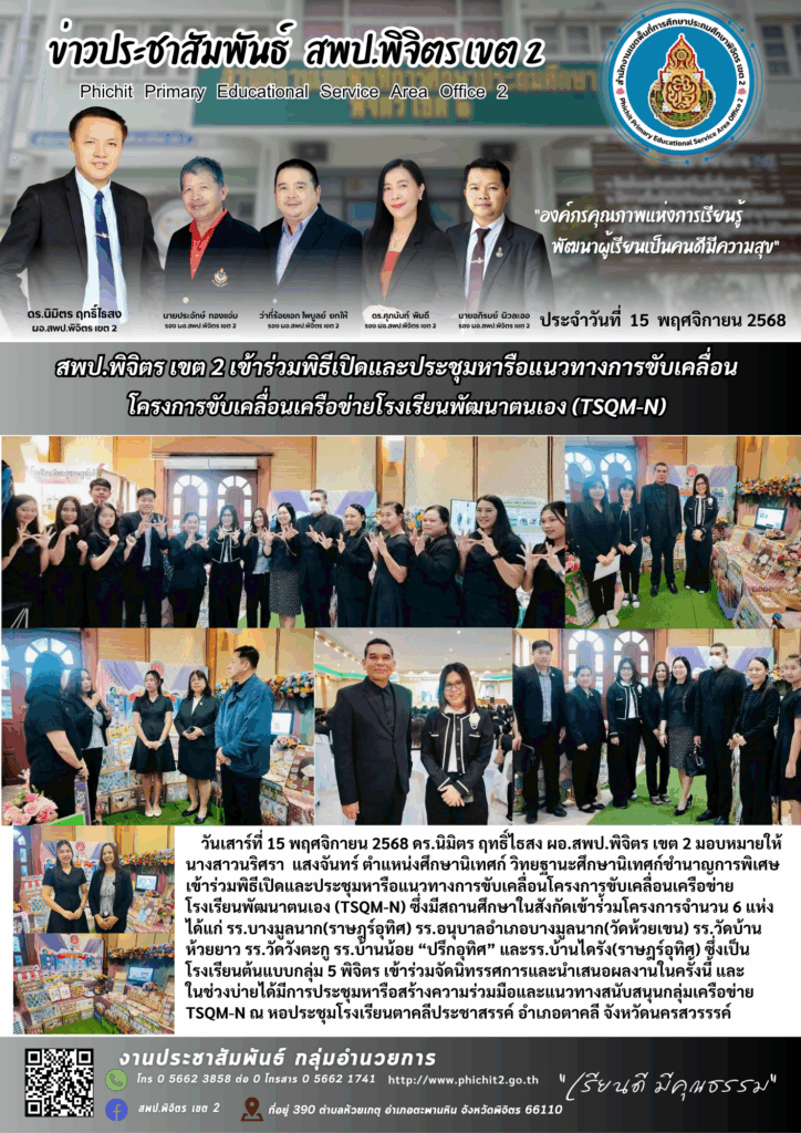 สพป.พิจิตร เขต 2 เข้าร่วมพิธีเปิดและประชุมหารือแนวทางการขับเคลื่อนโครงการขับเคลื่อนเครือข่ายโรงเรียนพัฒนาตนเอง (TSQM-N)