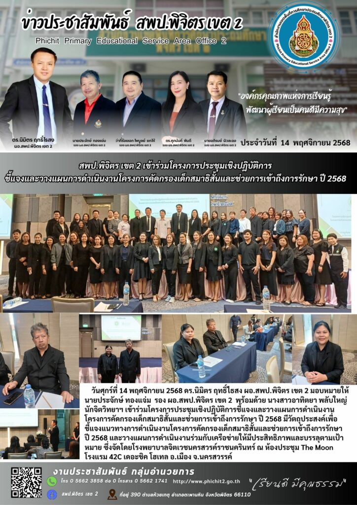 สพป.พิจิตร เขต 2 เข้าร่วมโครงการประชุมเชิงปฏิบัติการ ชี้แจงและวางแผนการดำเนินงานโครงการคัดกรองเด็กสมาธิสั้นและช่วยการเข้าถึงการรักษา ปี 2568