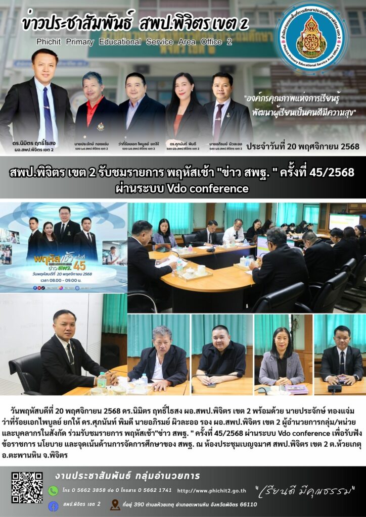 สพป.พิจิตร เขต 2 รับชมรายการ พฤหัสเช้า “ข่าว สพฐ. ” ครั้งที่ 45/2568 ผ่านระบบ Vdo conference